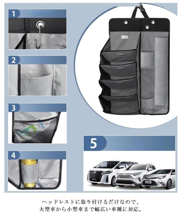 | 自動車は靴棚、傘カバーを多用する。 車内空間を有効に活用するために設計されており、下駄箱、傘筒、棚として使用でき、傘差込口に排水孔を設けて清潔に保つ。 車用マルチシューズラック&傘入れは土禁車にフィットするように特別に設計されており、車内のスペースを有効に活用できます。 傘差し部には水抜き穴もあり、清潔に車用収納ラックを保てます。ウェットスポンジまたはウェットタオルで簡単にきれいにする。 ヘッドレストに取り付けるだけなので、大型車から小型車まで幅広い車種に対応。 工具は一切必要なし!取付時間は僅か10 秒間!ベルトをヘッドレストに通し、マジックテープをシートバックに貼り付けて装着済み! コンパクトボディには5つの仕切り+ 4つの収納袋が含まれており、靴、傘、小物は分類して整理し、 サイドネット袋には携帯電話、ベビー用品を入れ、上部ポケットにはマグカップを収納し、リングには清潔ブラシをかけることができる。 牛津布の生地は伸びに強く、徒歩靴を置いても変形せず、日常使用でしっかりと耐久性がある、 牛津布は表面が滑らかで汚れが付着しにくいので、日常的に清潔にするときは湿布で拭くだけです。 | |