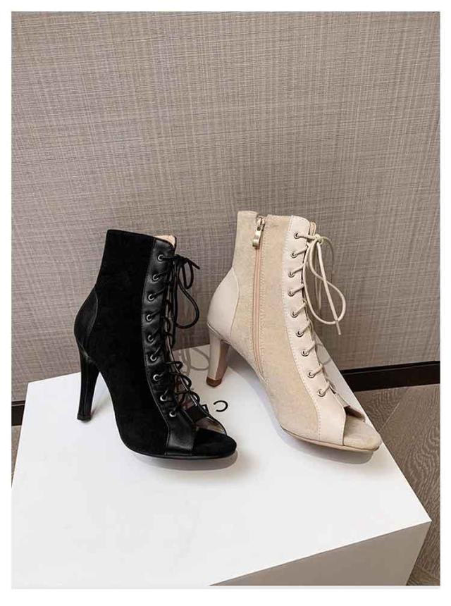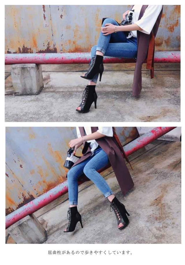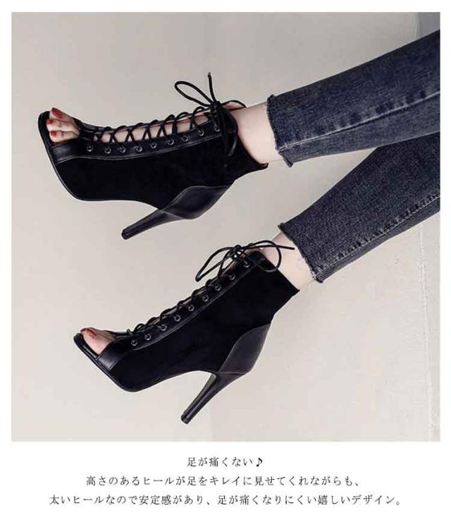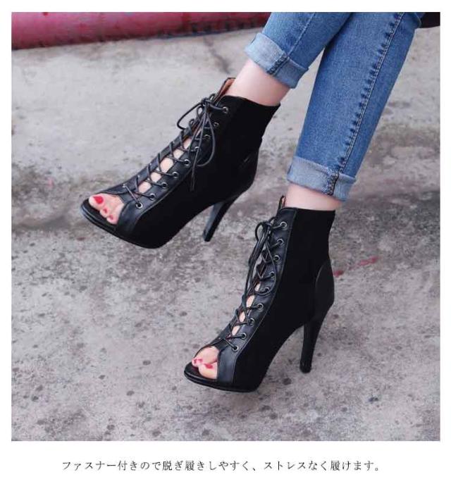 サマーブーツ レディース ハイヒール オープントゥ 歩きやすい ショートブーツ ブーツサンダル 柔らかい ブーツサンダル 編み上げ 痛くない 大きいサイズ おしゃれ ピンヒール レースアップ グラディエーター ヒール7cm/9cm