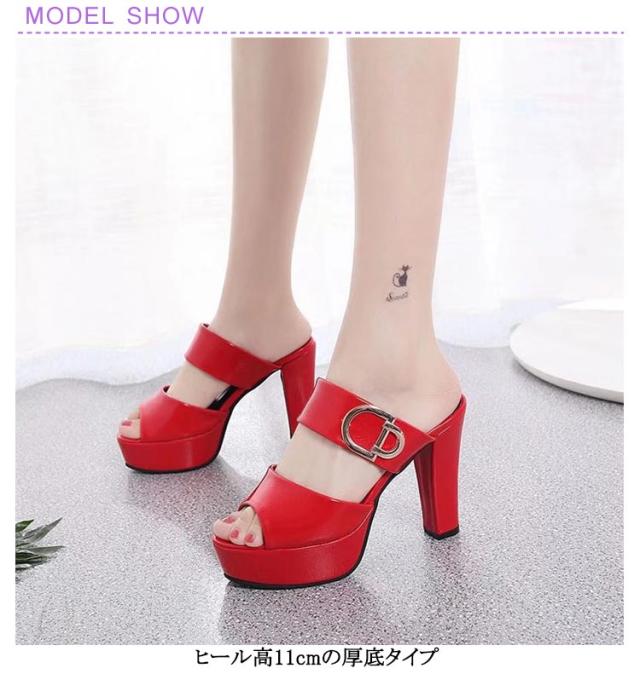チャンキーヒール チャンキーヒール カジュアル ミュール ヒール11cm スリッパ レディース 厚底サンダル 痛くない ストーム ハイヒール 歩きやすい 白 赤 黒