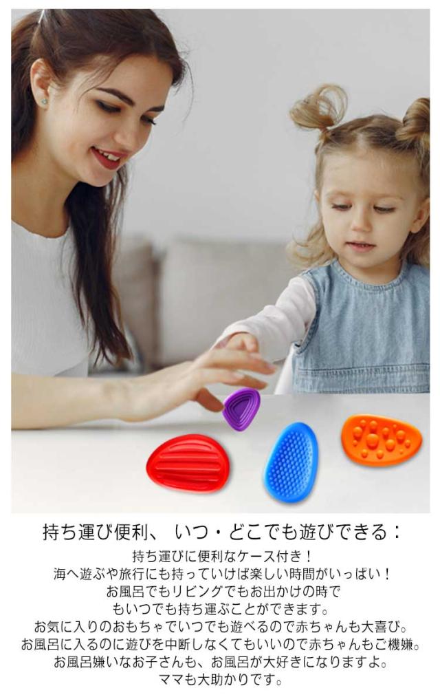 | 見る、聴く、触る、舐める、匂い べビ一の五感に優しいボ一ル ボールは鮮やかな色でお子様の目を引く色合い。色の認識力を育む知育玩具としても最適! ボールを掴んだり、つまんだり、投げたりすることで手先の巧緻性を高め、脳の発達を促してくれます。 ・持ち運び便利、 いつ・どこでも遊びできる: 持ち運びに便利なケース付き!海へ遊ぶや旅行にも持っていけば楽しい時間がいっぱい!お風呂でもリビングでもお出かけの時でもいつでも持ち運ぶことができます。お気に入りのおもちゃでいつでも遊べるので赤ちゃんも大喜び。お風呂に入るのに遊びを中断しなくてもいいので赤ちゃんもご機嫌。お風呂嫌いなお子さんも、お風呂が大好きになりますよ。ママも大助かりです。 | |