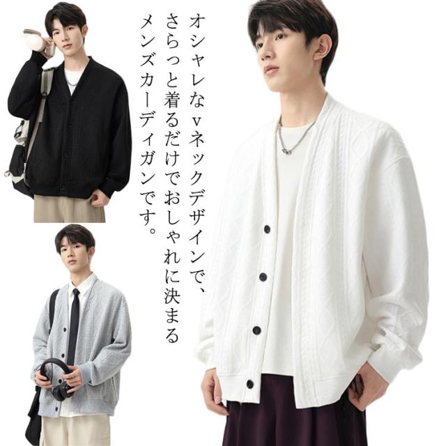 ビジネス メンズ セーター カーディガン トップス 秋 長袖 vネック ゆったり 無地 冬 羽織り おしゃれ 長袖 カーディガン オシャレ 大きいサイズ ビジネス
