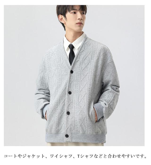 | オシャレなvネックデザインで、さらっと着るだけでおしゃれに決まるメンズカーディガンです。 肌触わりが柔らかくて、着心地も軽やかです。 適度の厚さで、秋は少し肌寒い時にライトアウターとして、冬にはアウターのインナーとして最適します! コートやジャケット、ワイシャツ、tシャツなどと合わせやすいです。 | |