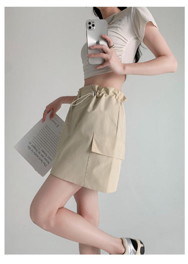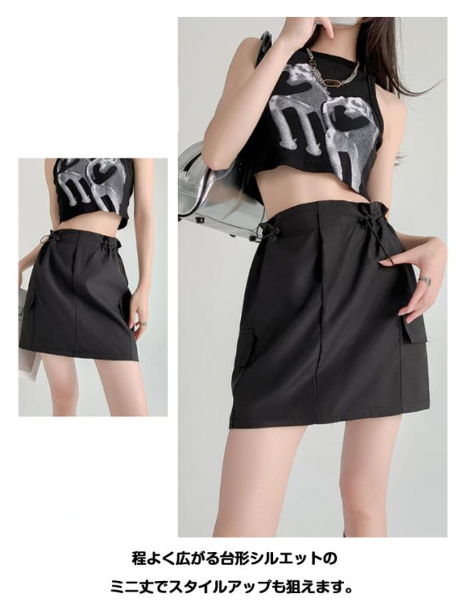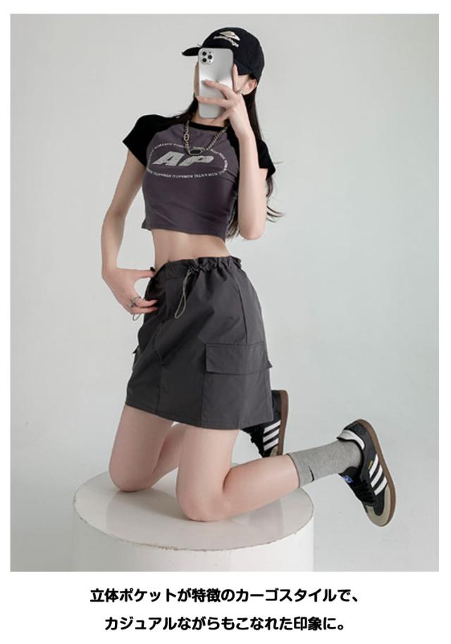 ポケット付き カジュアル ミニ丈 Aライン カーゴスカート レディース カーゴ 着?せ 美脚 無地 台形 ミニスカート スカート カーゴスカート ガーリー 大人 着回し 夏 ゴムウエスト ボトムス 夏服 アメカジ