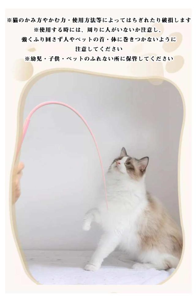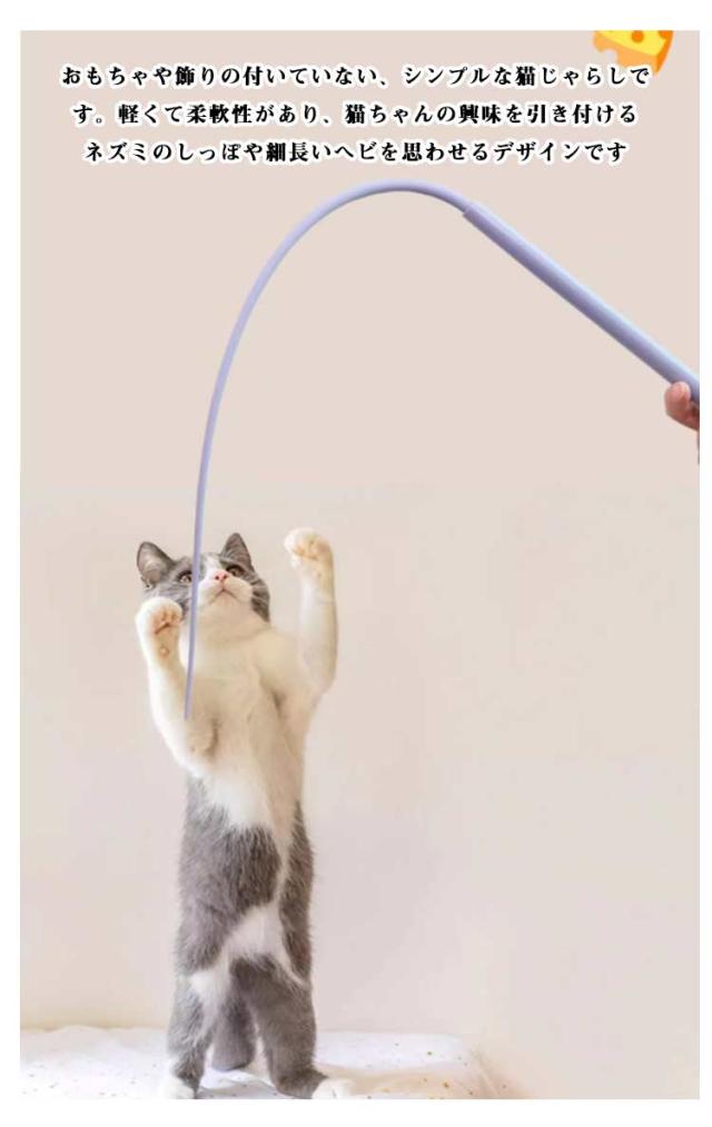 | ※猫のかみ方やかむ力・使用方法等によってはちぎれたり破損します ※使用する時には、周りに人がいないか注意し、強くふり回さず人やペットの首・体に巻きつかないように注意してください ※幼児・子供・ペットのふれない所に保管してください おもちゃや飾りの付いていない、シンプルな猫じゃらしです。軽くて柔軟性があり、猫ちゃんの興味を引き付けるネズミのしっぽや細長いヘビを思わせるデザインです 【猫の筋肉アップや運動不足解消にも】 猫じゃらしで遊ぶことは、猫の運動不足解消にもつながります。前後左右に動いたり、ジャンプをしたり、くるくる回ったり。猫の狩猟本能を刺激して追いかけることで活発に動き回り、健康を促進します。肥満の予防にもつながるので、外で遊ぶことが難しい猫のいい運動になるでしょう 全長約77cmのロングタイプ! 飼い主は猫との遊びの距離を保ちながら、安全に遊ぶことができます。これにより、猫は広い範囲で自由に動け、飼い主も安心して楽しむことができます | |