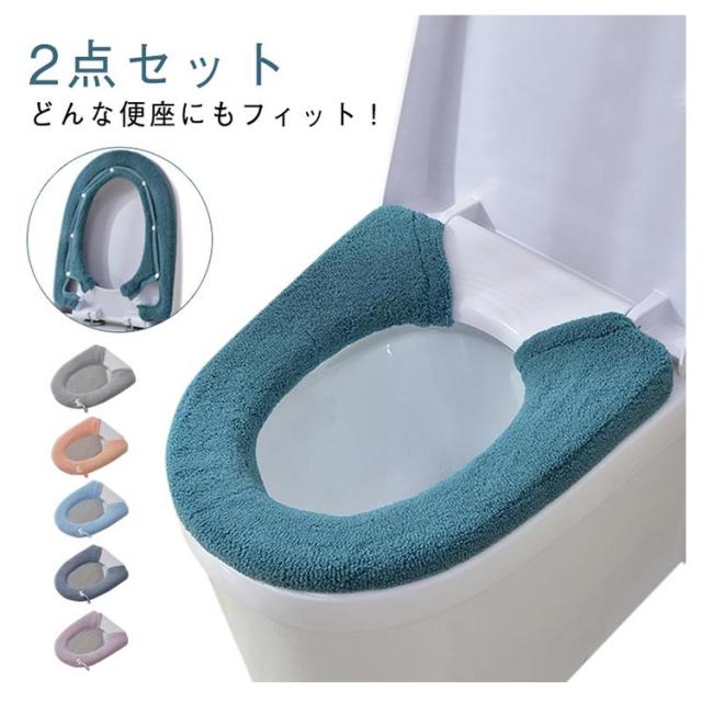 洗浄暖房型兼用 【2点セット】 便座カバー 厚手 トイレカバー O型 V型 スナップボタン留め ふわふわ 便座シート 洗える 取っ手付き 電気代節約 エコ スクエア型 伸縮性 トイレ用品 柔らかい 暖かい 【2点セット】 秋冬