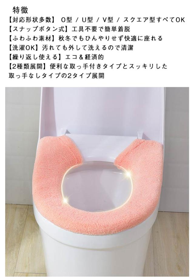 | どんな便座にもフィット! O型・U型・V型・スクエア型に対応できる万能便座カバー。 スナップボタンで簡単に取り付け・取り外しができ、毎日快適にお使いいただけます。 丸洗いできるから、いつも清潔・快適なトイレ空間をキープできます。 ご家庭のトイレをもっと心地よい空間に変えてくれる便利アイテムです。 特徴 【対応形状多数】 O型 / U型 / V型 / スクエア型すべてOK 【スナップボタン式】工具不要で簡単着脱 【ふわふわ素材】秋冬でもひんやりせず快適に座れる 【洗濯OK】汚れても外して洗えるので清潔 【繰り返し使える】エコ&経済的 【2種類展開】便利な取っ手付きタイプとスッキリした取っ手なしタイプの2タイプ展開 | |