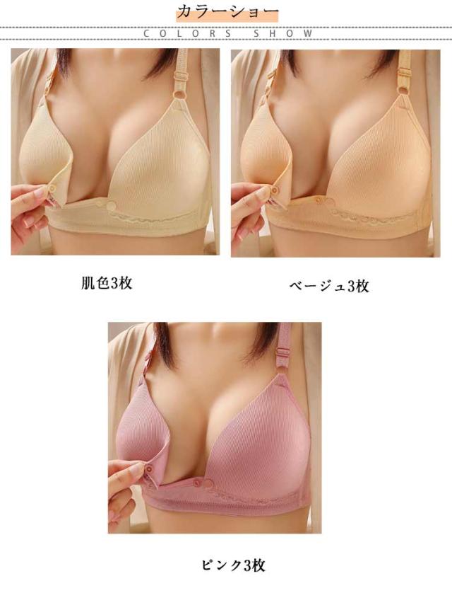 3枚セット マタニティブラ 垂れ防止 授乳用 3枚セット カップ付き ノンワイヤー ブラジャー フロントホック フロントオープン 妊婦 下着