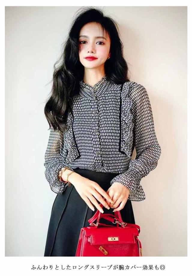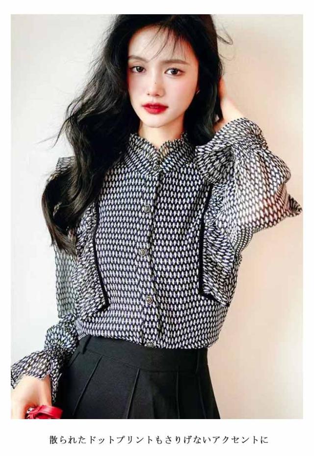ブラウス シフォン 長袖ブラウス 大人 オフィスブラウス ブラウス スタンドカラー オシャレブラウス ドット柄トップス 春秋新作 おしゃれ フォーマル オフィス 通勤 OL カジュアル きれいめ 可愛い ゆったりシャツ40代20代30代50代