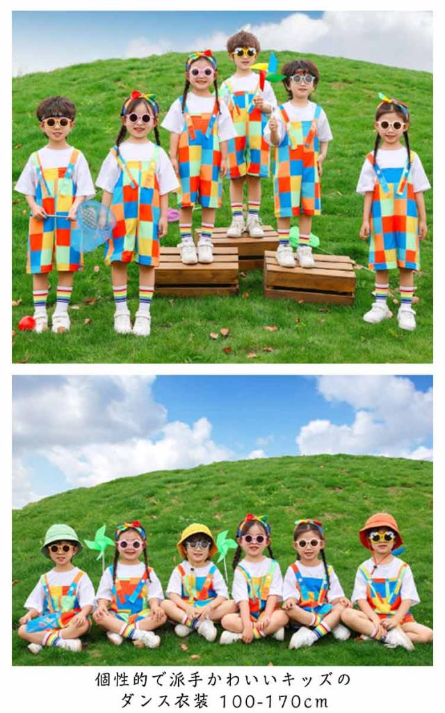 | ダンスのチーム衣装としてや普段着にもおすすめです 個性的で派手かわいいキッズのダンス衣装 100-170cm 明るい色合い、こどもをより可愛く映えます。 ダンスの発表会やダンスコンテストなどのチーム衣装におすすめ!! 目立つカラー使いで舞台映えばっちり!!元気いっぱいのチームカラーに!! | |