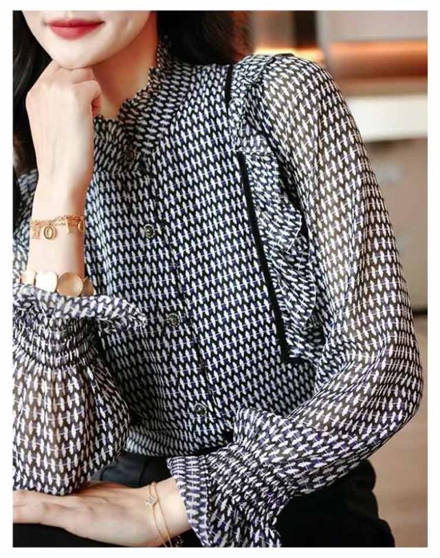 レディース フォーマル ブラウス オフィスブラウス スタンドカラー 長袖ブラウス 春秋新作 シフォン ドット柄トップス 大人 ブラウス オシャレブラウス オフィス 通勤 OL カジュアル きれいめ 可愛い ゆったりシャツ40代20代30代50代