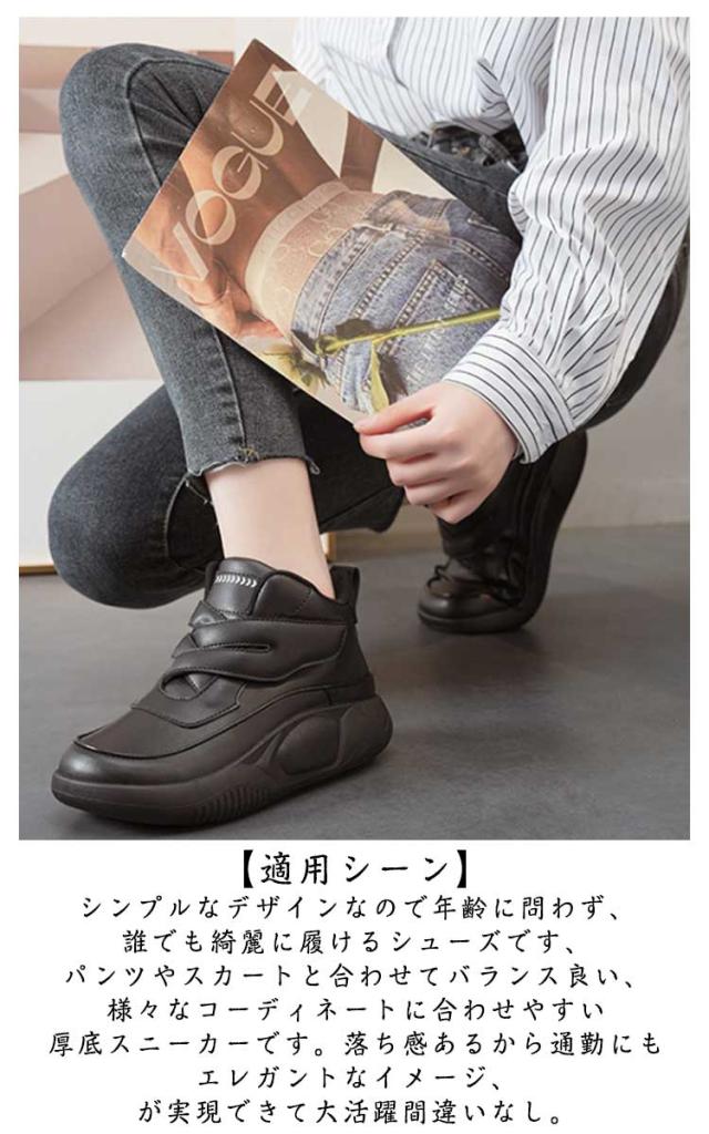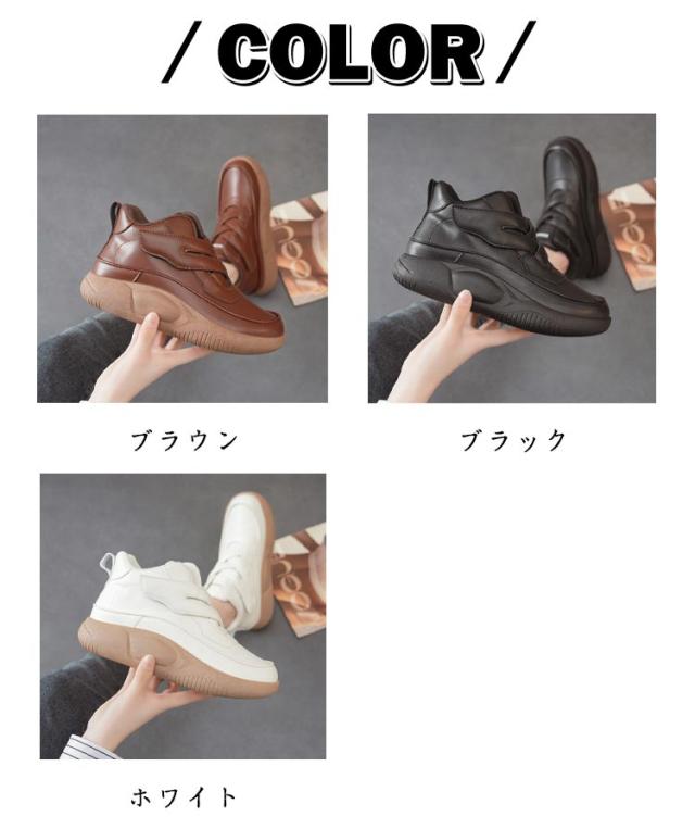| 【ハイカットスニーカー】【全3色】 ソフトで快適なPU+マイクロファイバーのアッパー、3Dシルエット、良好な通気性の質感を使用して、インソールも抗菌防臭加工を施して、柔らかくて、品質であることができます。 【美脚効果】 4cmのエレガントなヒール、厚底デザインで、さり気なく身長アップ、美脚効果を実現、女性綺麗な姿を示します。視界が変わる魔法のシューズです。 【疲れにくい】 靴の先を広くして設計して、ふくらはぎの腫れ、扁平足を改善し、クッション性と衛撃吸収性で足の痛みを防ぎます。クッション付きで、踏み込む際の衝撃を吸収し、とても歩きやすくて疲れにくいです。 【滑り止め&耐久性】 アウトソールには耐摩耗性に優れたラバーを使用し、滑りにくて耐磨耗性が抜群。旅行や買い物中でも足が疲れずに快適に歩くことができ、安全で快適な歩行体験を提供します。 適用シーン:シンプルなデザインなので年齢に問わず、誰でも綺麗に履けるシューズです、パンツやスカートと合わせてバランス良い、様々なコーディネートに合わせやすい厚底スニーカーです。落ち感あるから通勤にもエレガントなイメージ、が実現できて大活躍間違いなし。 | |