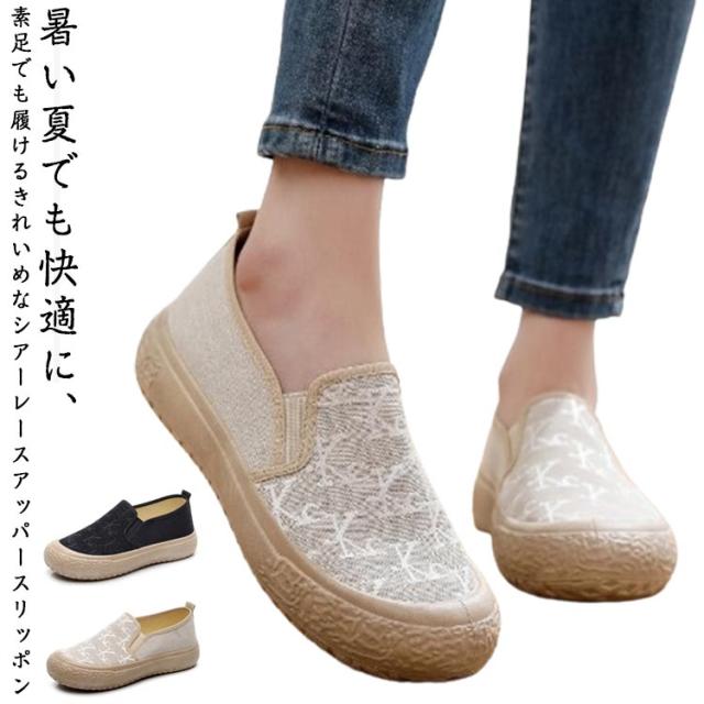 レース スリッポン レース レディース 履きやすい スリッポンスニーカー メッシュシューズ 紐なし ローカット 透け感 可愛い おしゃれ フラットシューズ かわいい オフィス 無地 シンプル 大きいサイズ レース ぺたんこ 通勤 春夏