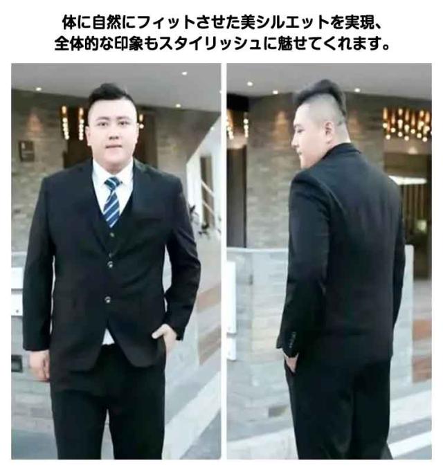 | M〜9XL!大きいサイズ!通勤やフォーマルにぴったりなスーツです。 オールシーズン対応で、ポリエステル素材を使用した丈夫で軽いフォーマルスーツ。 体に自然にフィットさせた美シルエットを実現、全体的な印象もスタイリッシュに魅せてくれます。 落ち着いた大人の雰囲気を演出してくれ、様々なシーンでご着用頂けるおすすめのジャケットです。 ビジネス・オフィススタイルとしてご活躍頂けます。通勤/就活/面接/お受験/入学式/同窓会/卒業式/仕事/ビジネス/事務服/制服/七五三/お宮参り/冠婚葬祭/お受験/入園入学/参観日に。 | |