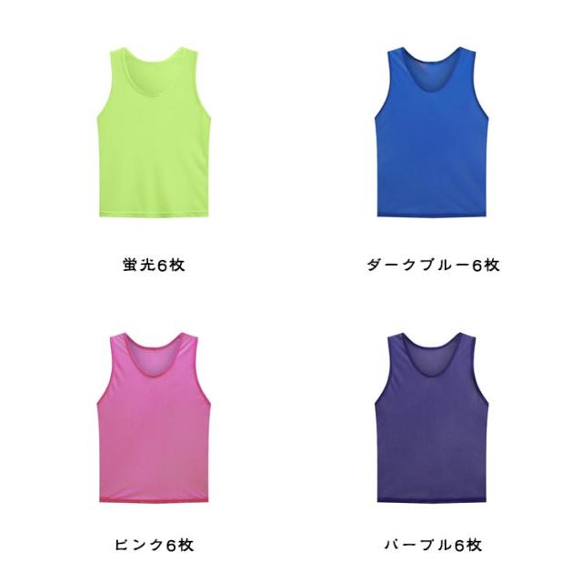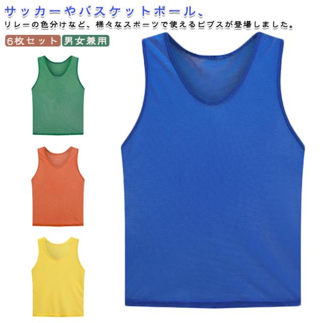 ゼッケン 軽量 ビブス メッシュ 子供用 ビブス 大人用 チームベスト 番号なし 無地 通気性 6枚セット 男女兼用 サッカー バスケ フットサル 学校 行事 自治体 運動会