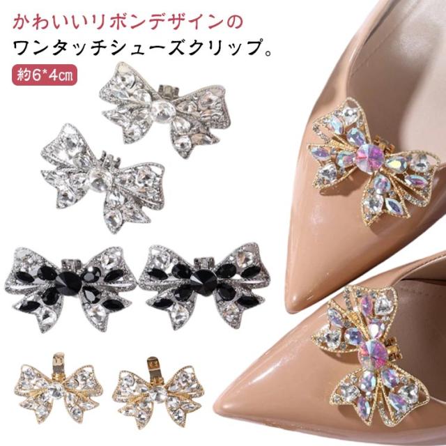 リボン キラキラ お呼ばれ 結婚式 シューズクリップ クリップ パンプス シューズアクセサリー 飾り パンプスクリップ 装飾品 ビジュー 華やか ストーン おしゃれ 取外しOK 着せ替え レディース 女性 セレモニーシューズ 結婚式シューズ シューズパーツ