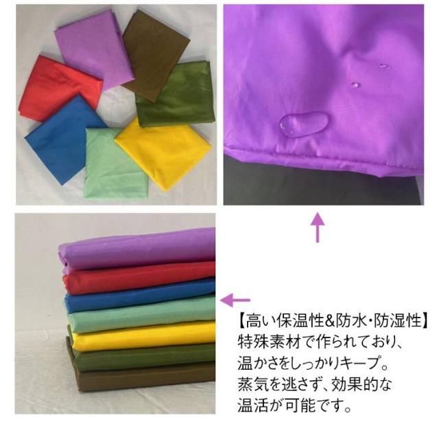 | 【よもぎ蒸しマント 手が出せる 7color選べる】 このよもぎ蒸しマントがあれば、手軽に温活が始められます! リラックスしながらしっかりと体を温め、よもぎ蒸しの効果を最大限に引き出せるアイテムです。 【高い保温性&防水・防湿性】 特殊素材で作られており、温かさをしっかりキープ。 蒸気を逃さず、効果的な温活が可能です。 【丸洗いできて清潔をキープ】 洗濯機で丸洗い可能! つでも清潔な状態で使えるから安心して繰り返し使用できます。 【手を出せる便利な設計】 読書や水分補給、スマホ・タブレット操作も可能! 温活しながらリラックス時間を有効活用できます。 【着脱簡単なゴム製ネック部分】 首元がゴム製なので、スムーズに着脱可能。 ストレスなく使える設計です。 【男女兼用で家族みんなで使える】 シンプルでスタイリッシュなデザインだから、性別や年齢を問わずご利用いただけます。 | |