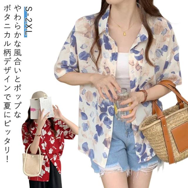 アロハシャツ ハワイシャツ 半袖 総柄シャツ 開襟 アロハシャツ おしゃれ かわいい 柄シャツ ボタニカル 花柄 薄手 涼感 アロハシャツ トップス カジュアル レディース 夏 海 リゾート アロハ 羽織り ビーチ 夏