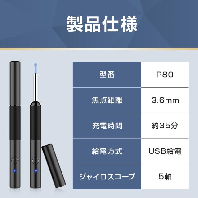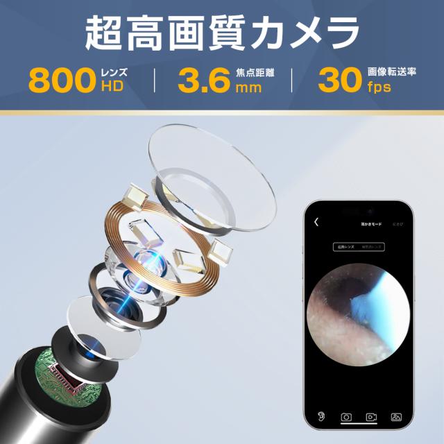 耳かき カメラ 【500万画質・USB充電式】 3.5mmワイヤレス IP67防水 イヤースコープ 光る耳かき ライト付耳かきIOS/Android対応 みみかき 極細レンズ