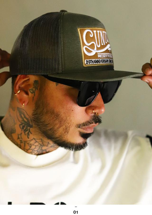 「メッシュ帽」や「トラッカーキャップ」、「スナップバックキャップ」、などとも呼ばれる高めのクラウンと四角型カーブバイザーによる、カジュアルな定番シルエット。