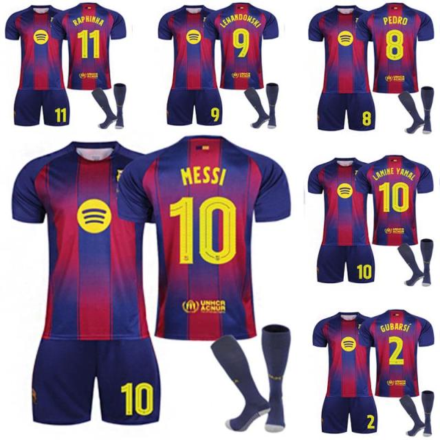 新サッカーウェア 2526バルササッカーウェア 9番レバン 8番ペドロ 6番ガビ 10番メッシ 10番 ラミン・ヤマル ホームユニフォームセット 大人 子供 半袖 セット