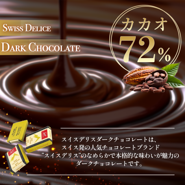 ・スイスの有名チョコレートブランド「スイスデリス」の、クリーミーで本格的なダークチョコレートをお楽しみください。