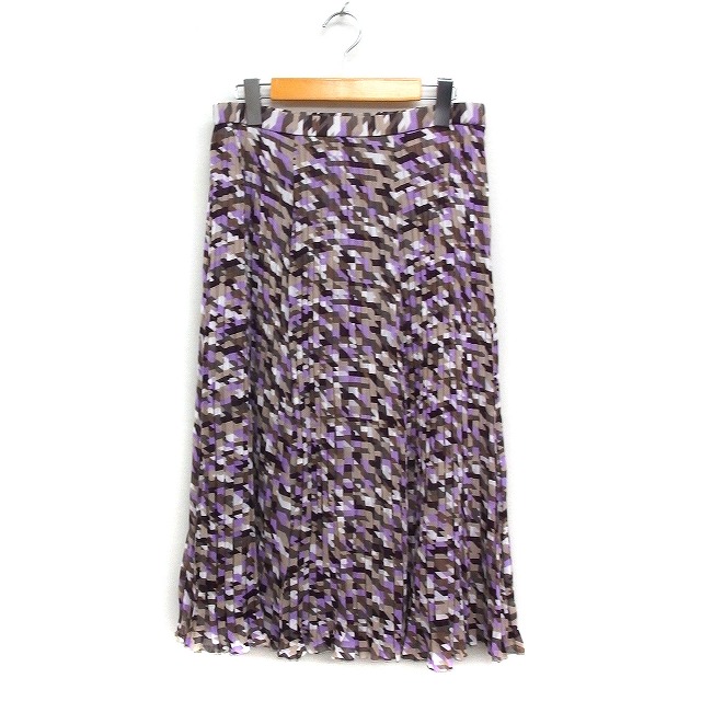 【中古】エコー ECHO71 柄 プリーツスカート ロング ミモレ丈 M ベージュ系 /FT6 レディース