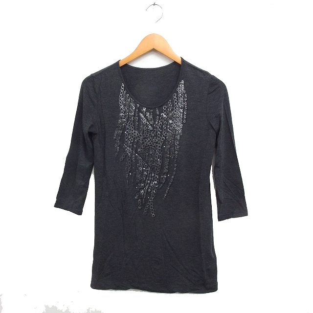 【中古】コムサ COMME CA プリント Tシャツ カットソー 7分袖 ロング丈 9 チャコールグレー /FT18 レディース