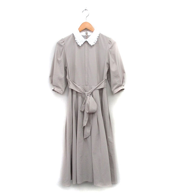【中古】リランドチュール Rirandture ワンピース ロング 七分袖 リボン レース 1 ベージュ /KT28 レディース