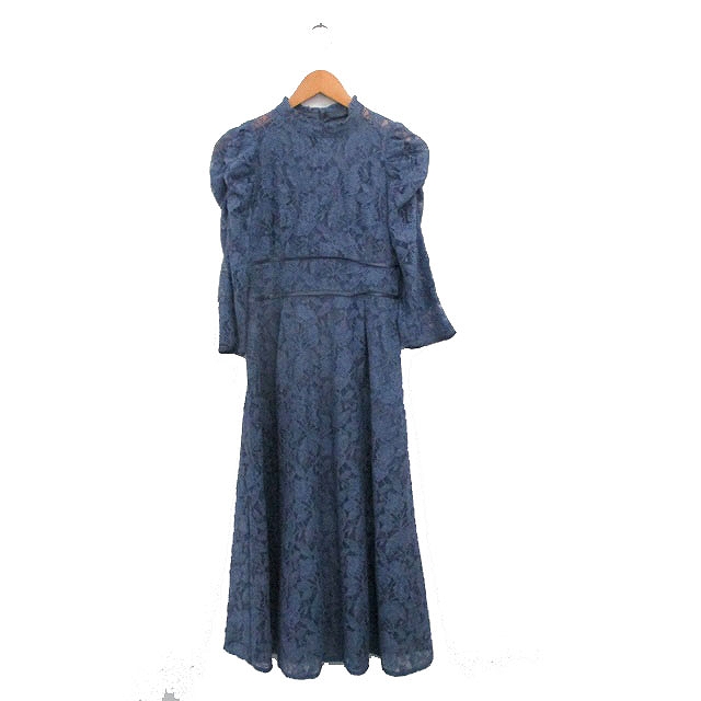 【中古】アースミュージック&エコロジー 総レース ワンピース 七分袖 S ブルー 青 /KT1 レディース