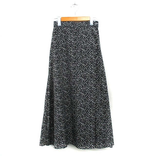 【中古】シップス SHIPS フレア スカート ロング ヒョウ柄 ブラック 黒 /KT5 レディース