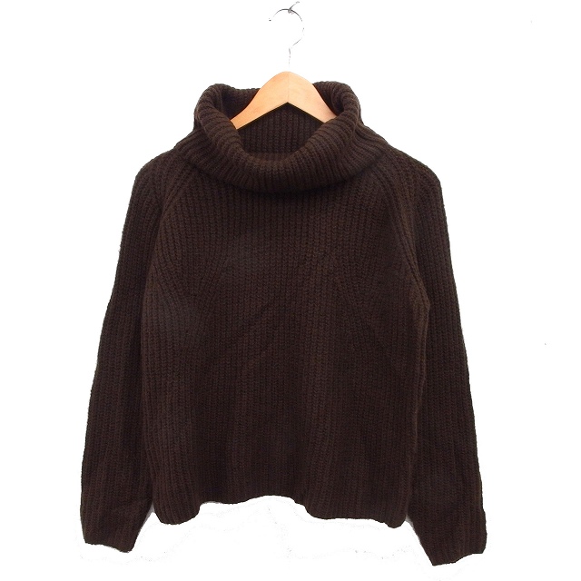 【中古】マウジー MOUSSY オフタートル ニット セーター リブ ラグランスリーブ クロップド 長袖 F 茶 ブラウン