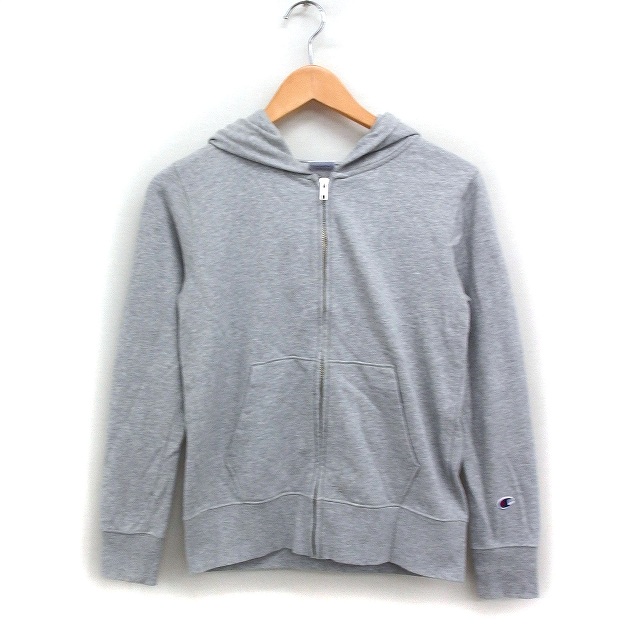【中古】チャンピオン CHAMPION スウェット パーカー ジップアップ コットン 綿 M グレー 灰 /FT19 レディース