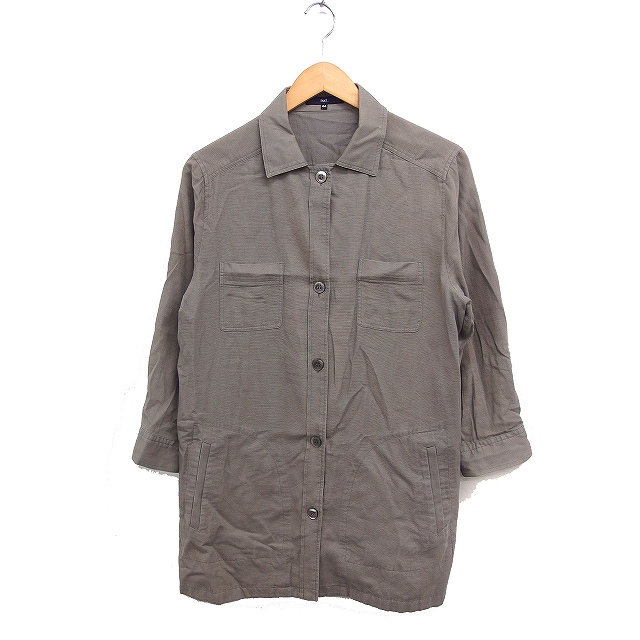 【中古】ラエフ la.f… シャツ チュニック 長袖 無地 リネン混 コットン 綿 大きいサイズ 44 ライトブラウン 薄茶 /FT