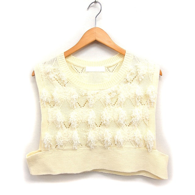 【中古】ルシャンテ le chanter カットジャカード ベスト ショート丈 ニット 38 オフホワイト 白 /FT15 レディース