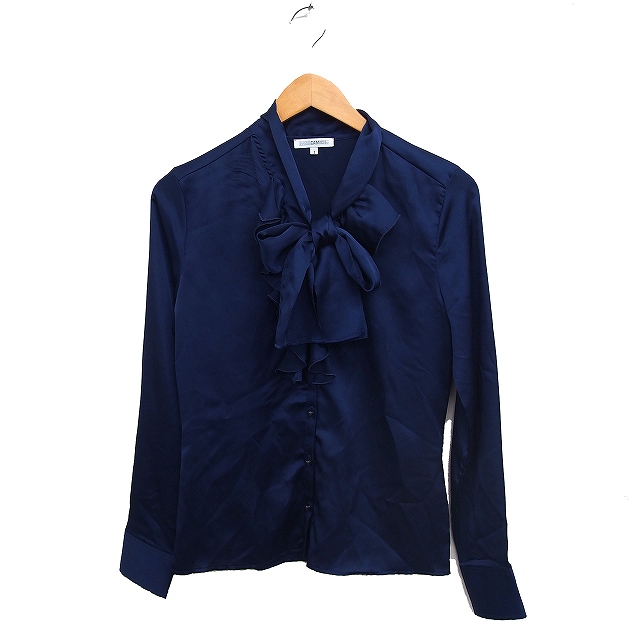 【中古】ナラカミーチェ NARA CAMICIE リボン ラッフル シャツ ブラウス 長袖 無地 光沢 サテン 1 ネイビー 紺 /FT31
