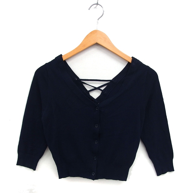 【中古】ビーラディエンス BE RADIANCE レースアップ カーディガン ニット クロップド リブ ハイゲージ 七分袖 F 紺
