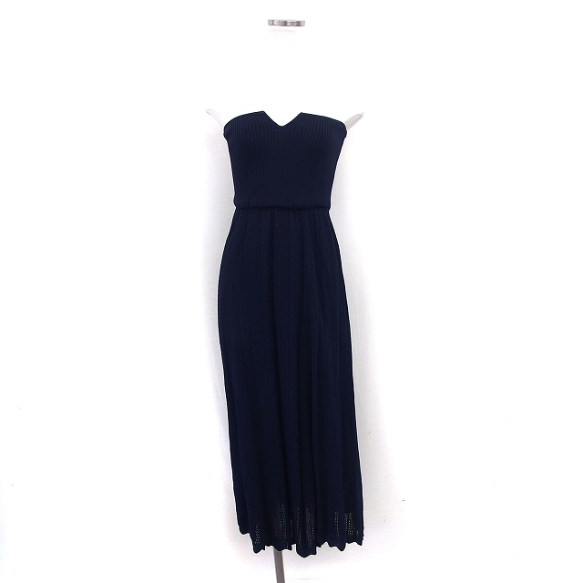 【中古】ココディール COCO DEAL ベアトップ ニット ワンピース フレア ロング リブ ペチコート 2 紺 ネイビー