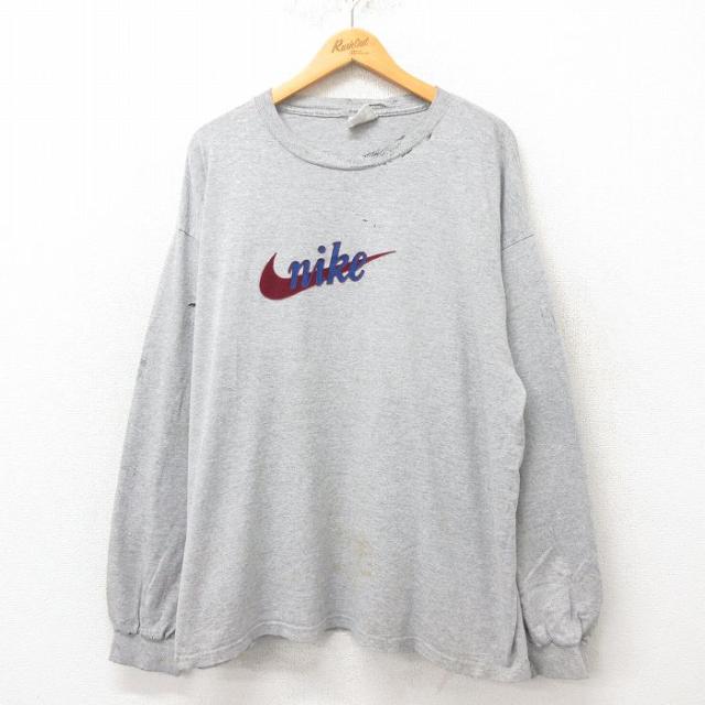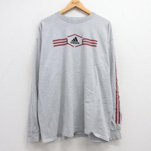 【商品名】 XL★古着 アディダス adidas 長袖 ビンテージ Tシャツ メンズ 90年代 90s ワンポイントロゴ 大きいサイズ クルーネック USA製 グレー 霜降り【spe】