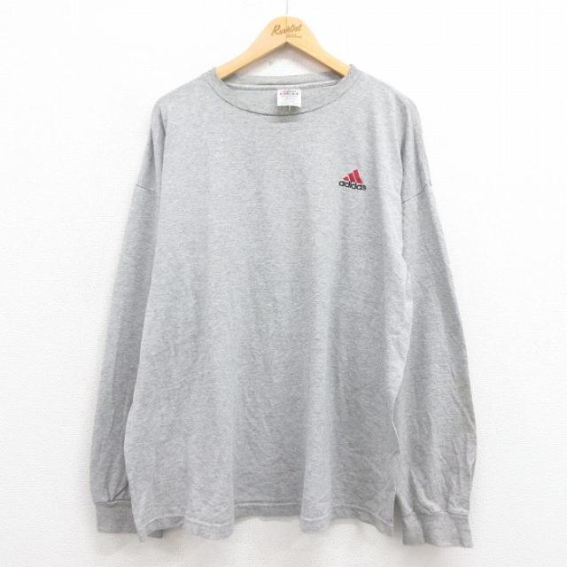古着 アディダス adidas 長袖 ビンテージ Tシャツ メンズ 90年代 90s ワンポイントロゴ 大きいサイズ クルーネック USA製 グレ 中古 古着