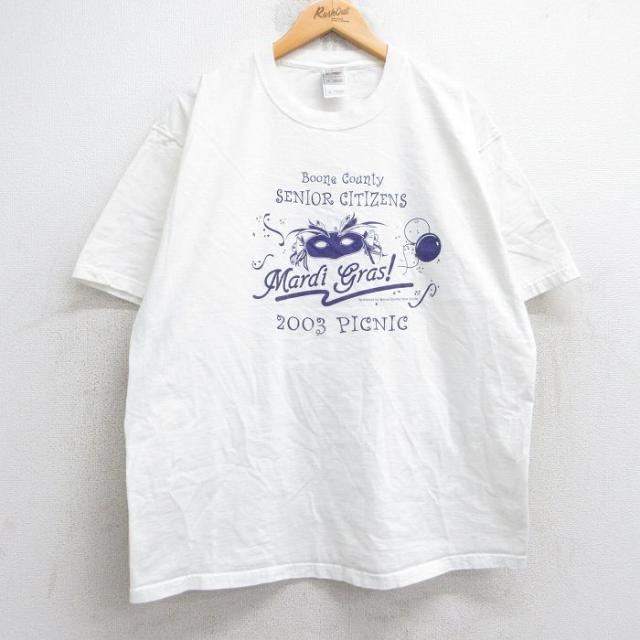 【商品名】 XL★古着 フルーツオブザルーム 半袖 ビンテージ Tシャツ メンズ 00年代 00s マルディグラ 仮面 コットン クルーネック 白