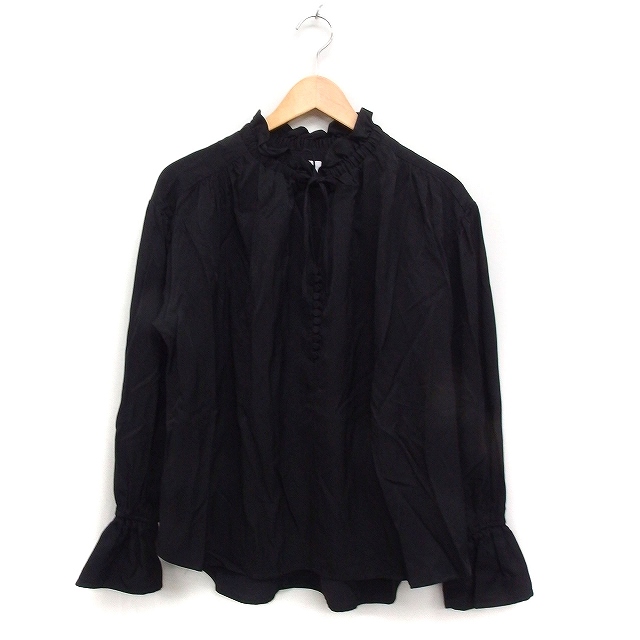 【中古】オペークドットクリップ OPAQUE.CLIP キャンディースリーブ ブラウス 長袖 フリルリボンネック 無地 36 S 黒