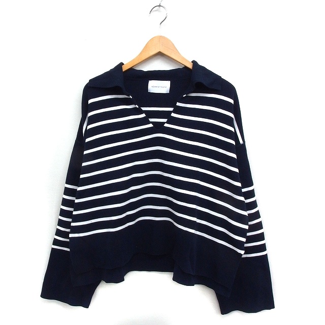 【中古】アダムエロペ Adam et Rope' オープンカラー ボーダー柄 ニット セーター 長袖 コットン 綿 F ネイビー 紺 /FT