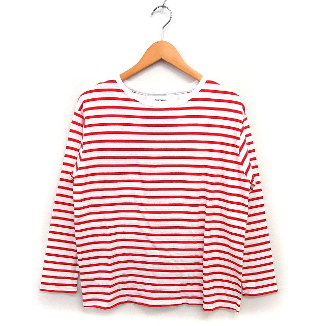 【中古】ハートマーケット HEART MARKET ボートネック カットソー Tシャツ ボーダー コットン 綿 長袖 F 赤 レッド