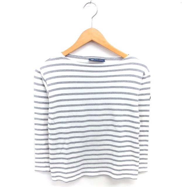 【中古】セントジェームス SAINT JAMES バスクシャツ ボーダー Tシャツ カットソー 七分袖 XXS アイボリー グレー