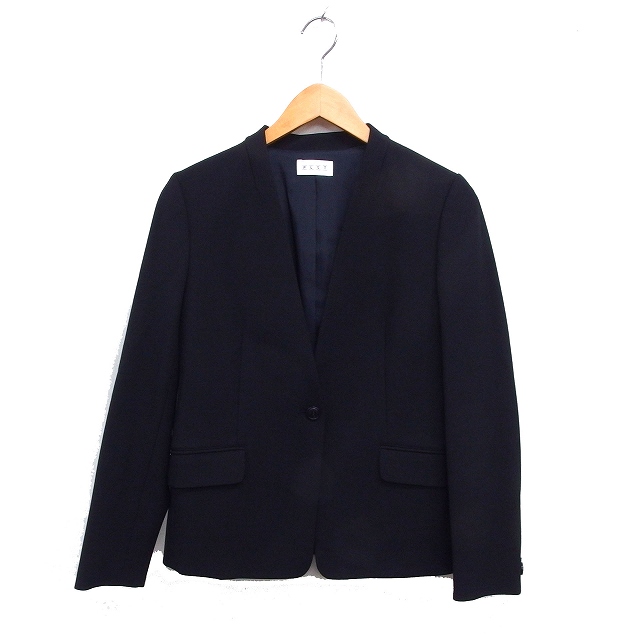 【中古】プラステ PLST ノーカラー ジャケット アウター 総裏地 シンプル 無地 M 黒 ブラック /NT32 レディース