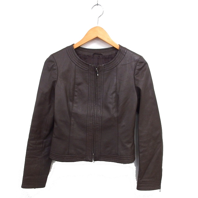【中古】アナイ ANAYI レザー ジャケット アウター 総裏地 ジップアップ クロップド 38 茶 ブラウン /NT21 レディース