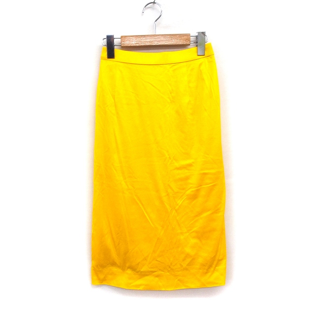 【中古】レオナール LEONARD タイト スカート スリット ミディ丈 無地 コットン 綿 70 イエロー 黄 /FT9 レディース