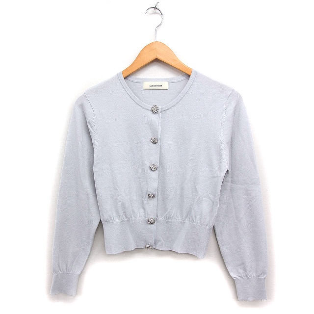 【中古】レッセパッセ LAISSE PASSE ビジュー付き ニット カーディガン 丸首 無地 38 ライトグレー /FT38 レディース