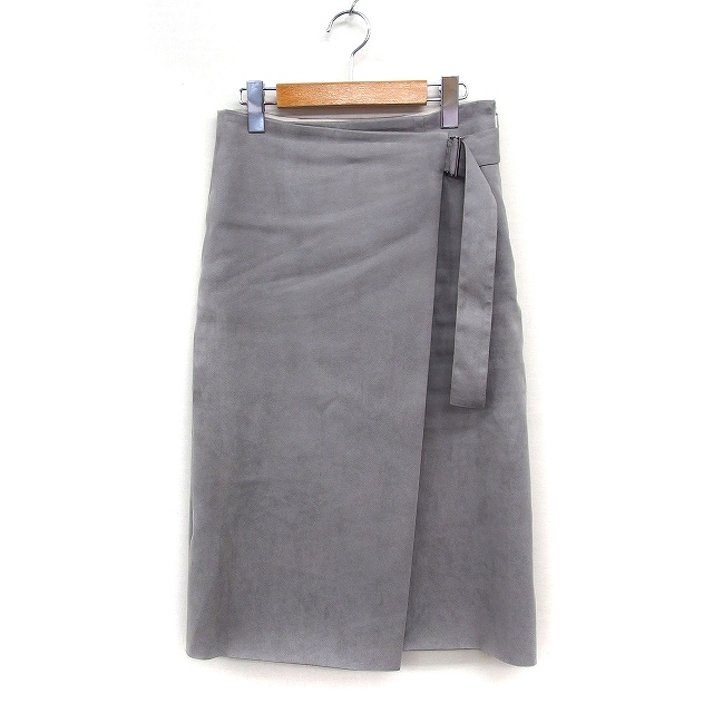 【中古】トゥモローランド TOMORROWLAND スエードライク ラップ タイトスカート ミディ丈 無地 ベルト 34 グレー 灰