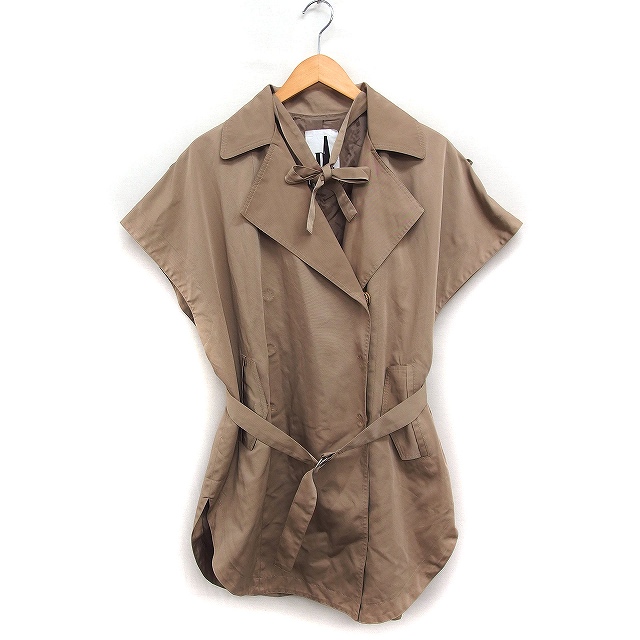 【中古】オキラク OKIRAKU トレンチ ジレ アウター フレンチスリーブ ミドル丈 無地 XS ベージュ /FT33 レディース